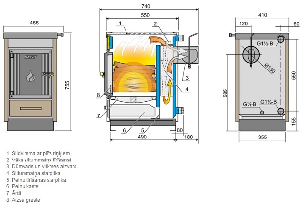 * Var izmantot arī akmeņogles, koksnes atlikumus, skaidu un kūdras briketes. Neiesakām lietot malku, kuras mitrums pārsniedz 25 %.