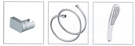Komplektā: PVC dušas šļūtene 1.5m, rokas duša, turētājs.